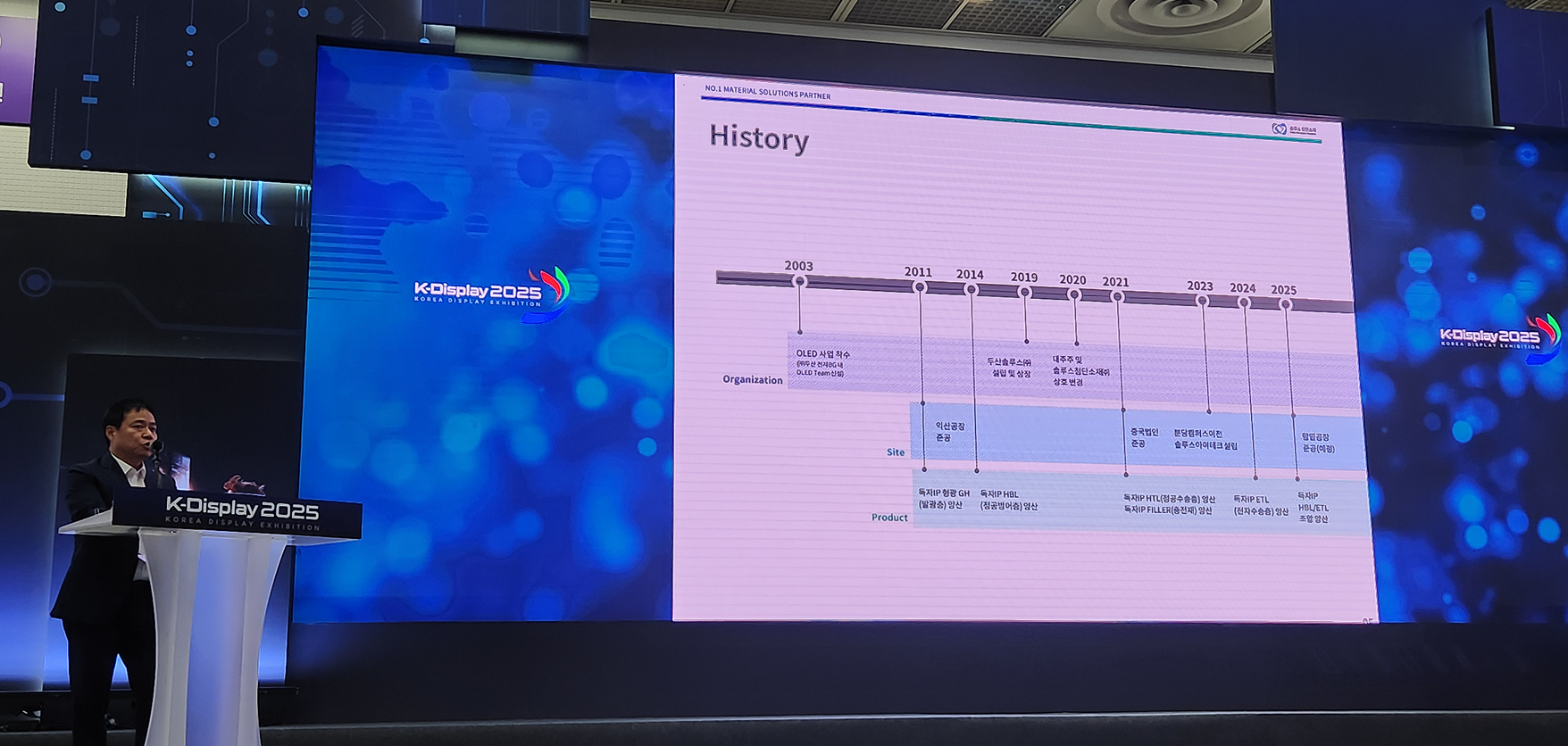 为期4天的韩国国内最大规模显示技术学术会议“IMID 2025”已在釜山会展中心召开。索路思高新材料OLED事业部也在会上展出了发光及非发光领域的核心产品,并向众多专业人士及主要相关人员展示了公司的技术优势与竞争力。此外,三星显示、LG Display、LG化学、德国默克、日本出光兴产株式会社等国内外主要企业齐聚一堂,发布新技术并阐述了未来显示领域的发展愿景。