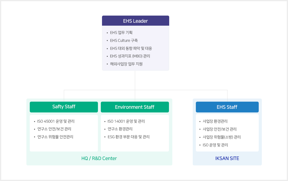 솔루스첨단소재는 전담 EHS팀 구성을 통해 안전 및 환경경영시스템(ISO 14001/45001)을 구축하고, 그 체계를 지속 발전시키고 있습니다.